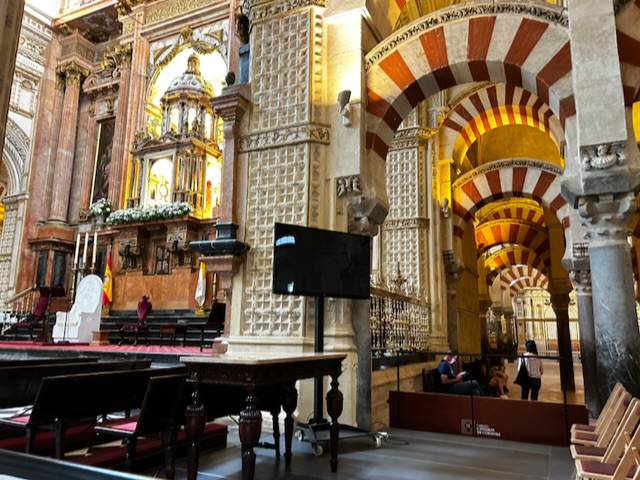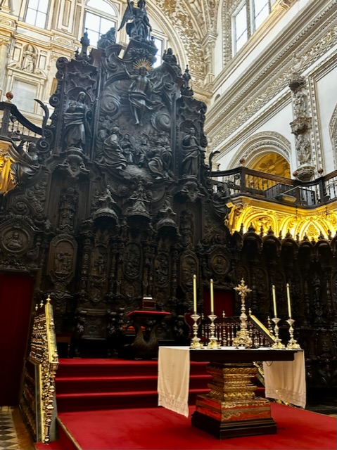 Above the flat roof of the mosque rises the cathedral that was built in the middle of the mosque. The cathedral was started in the 13th century and continued for 200 years. Today, this building is know as the Mezquita